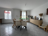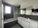Maison récente de construction traditionnelle composée d'une entrée avec placard, d' une pièce de vie salon/salle à manger ouvert sur une cuisine entièrement aménagée et équipée avec accès au garage, wc avec lave mains et une buanderie (possible de faire une salle d'eau). A l'étage (plancher béton) palier désservant 4 chambres dont une avec coin dressing, un wc et une salle de bains avec double vasque.