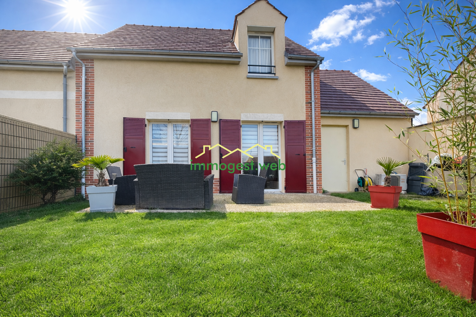 Jardin, terrasse, garage + une place de stationnement privative.