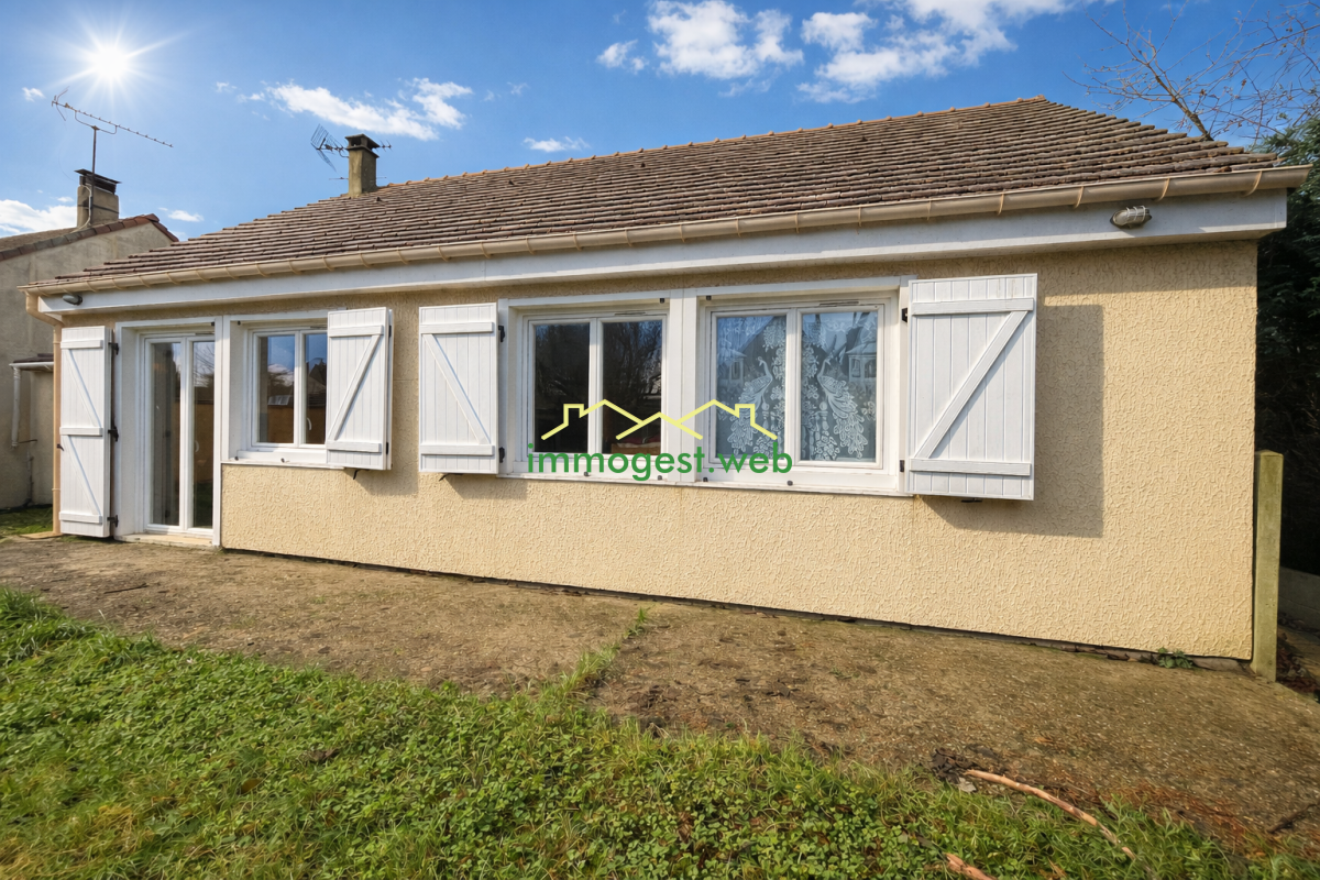 Pavillon de plain-pied sur sous-sol total comprenant une entrée sur la pièce de vie salon/salle à manger avec cheminée, une cuisine ouverte aménagée et équipée, une salle de bains, un wc et quatre chambres.