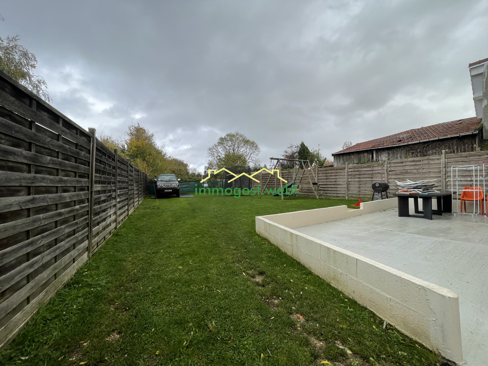Jardin de 833m² avec petite dépendance et cabanon.