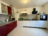 Maison composée au rez de chaussée d'une entrée avec placard sous escalier, un wc, une cuisine aménagée et entièrement équipée, une pièce de vie salon/salle à manger